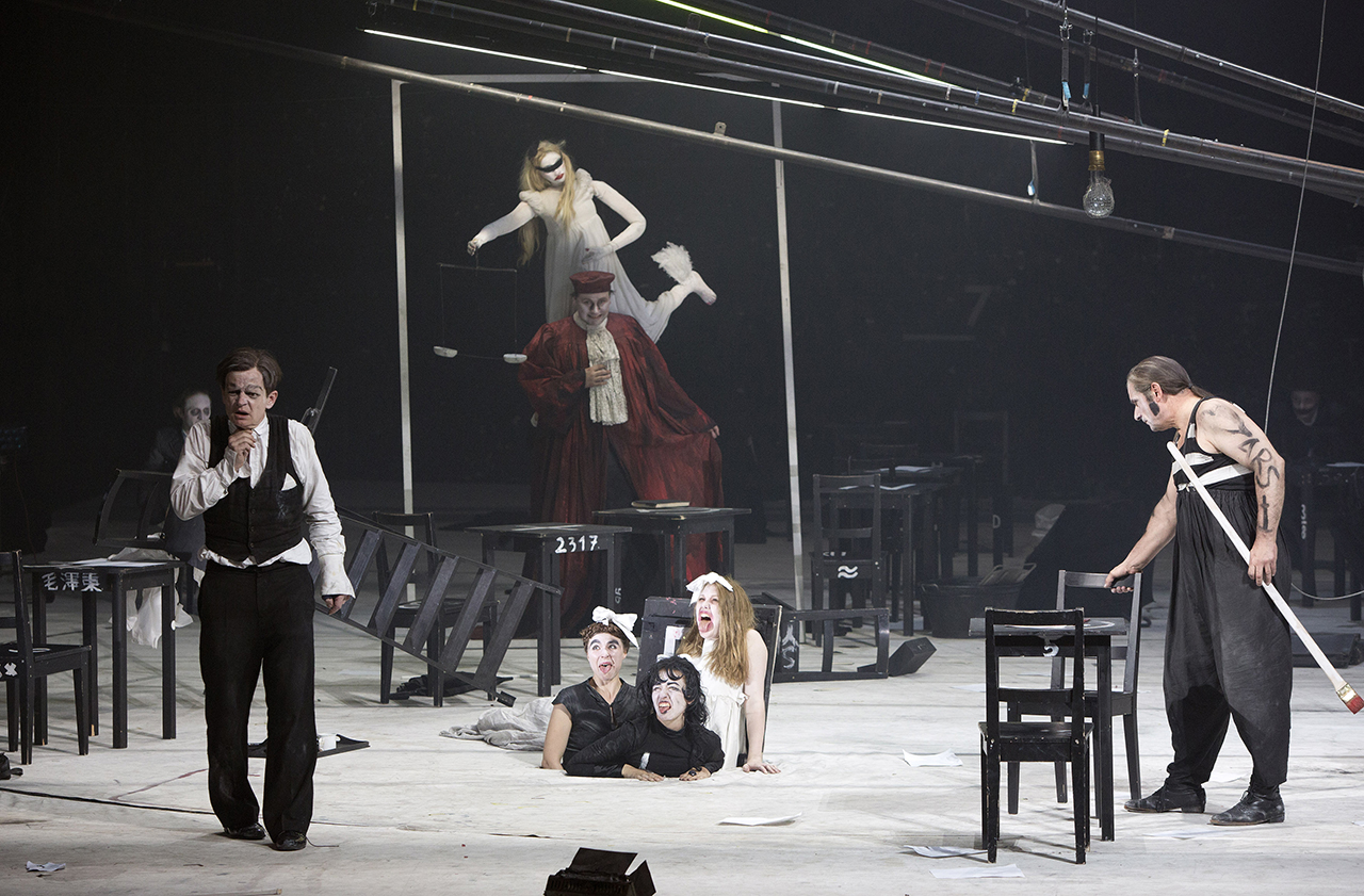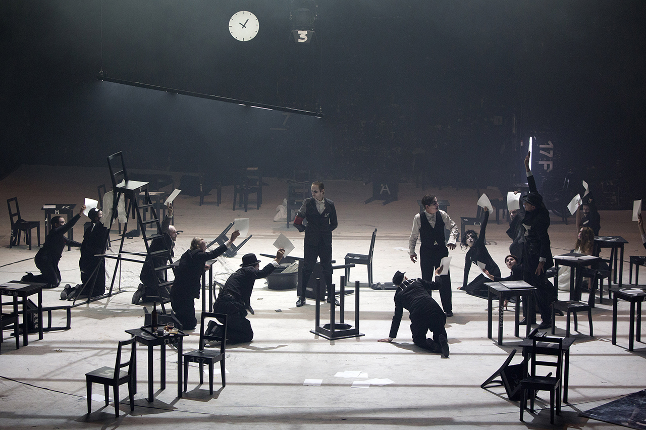 Escena de Kafkas Prozess. Berliner Ensemble, 2014. Con: Ensemble - Fotografía de Lucie Jansch |