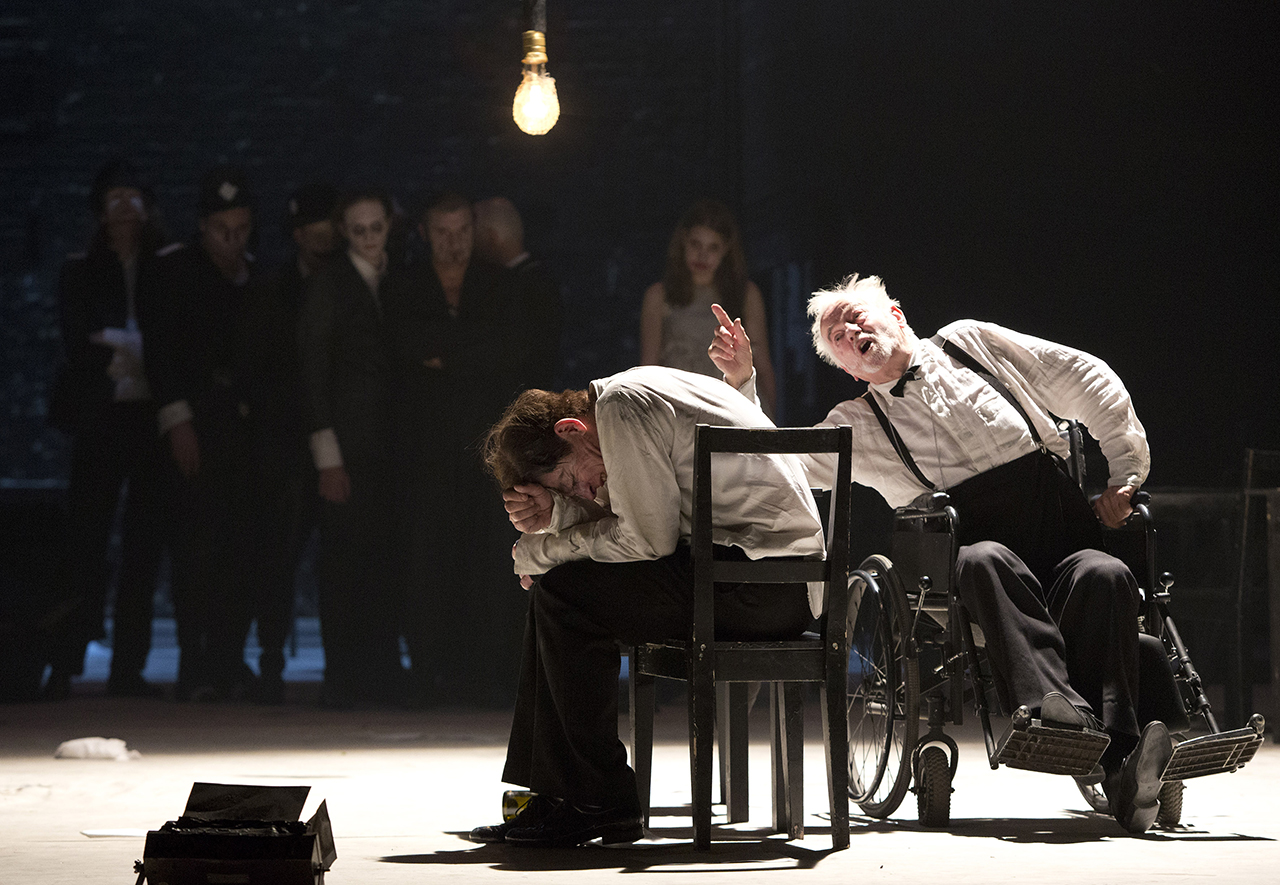 Escena de Kafkas Prozess. Berliner Ensemble, 2014. Con: Jürgen Holtz y Veit Schubert - Fotografía de Lucie Jansch |