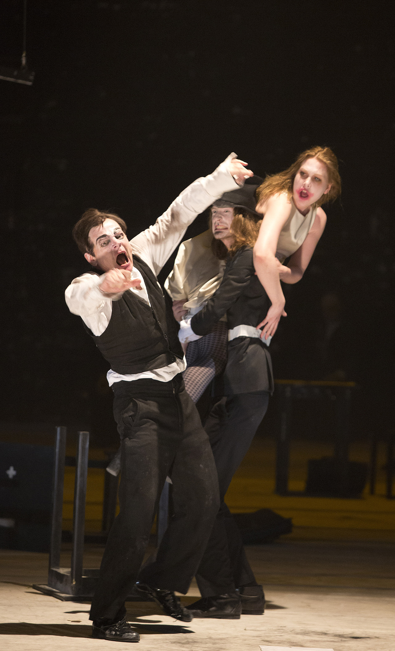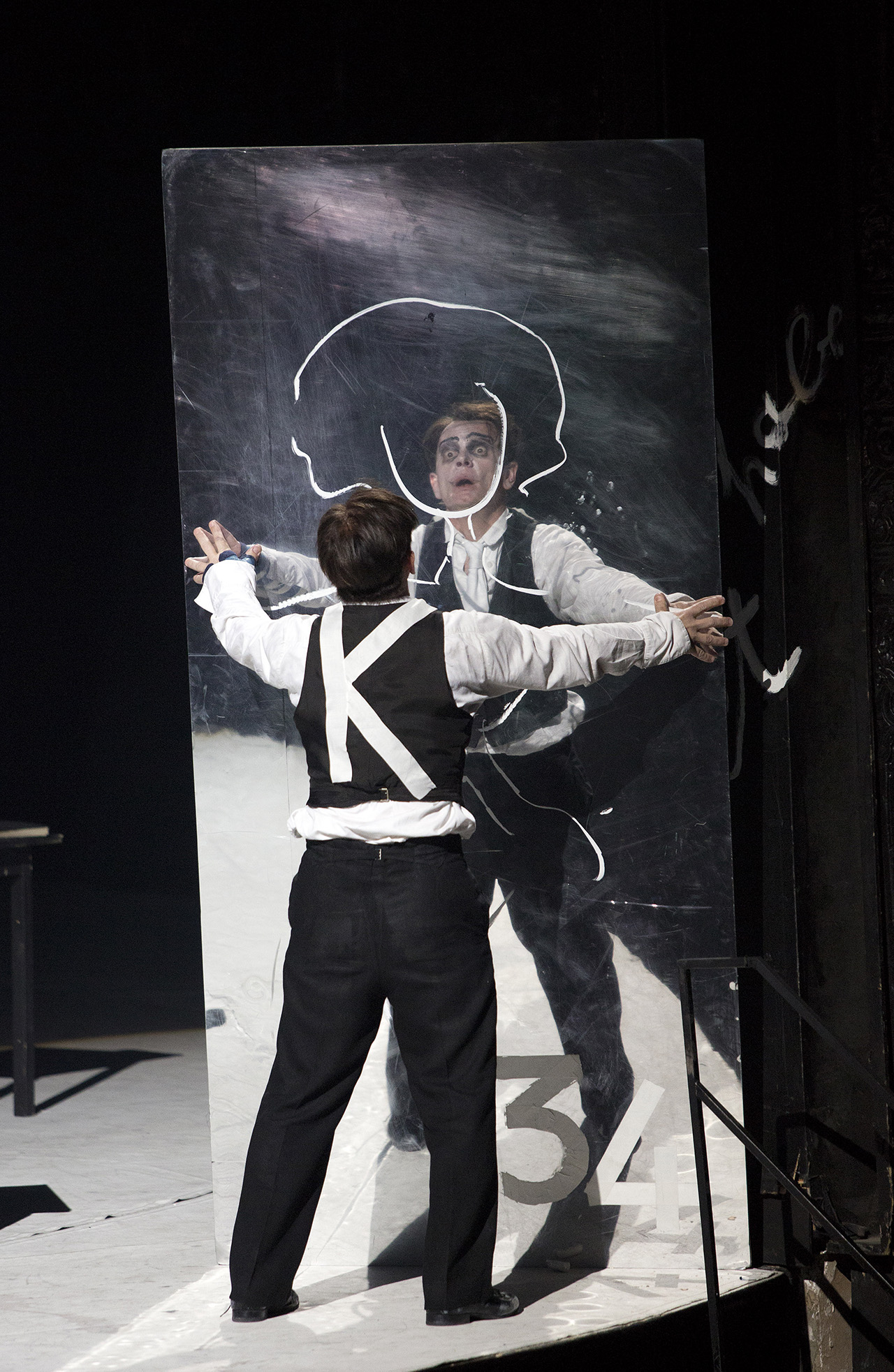 Escena de Kafkas Prozess. Berliner Ensemble, 2014. Con: Veit Schubert, Luca Schaub y Karla Sengteller - Fotografía de Lucie Jansch |